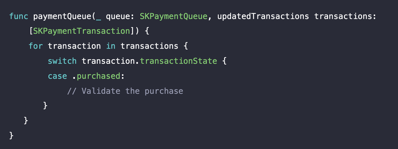 이유에 대해 설명하기 위해 예를 들면, 리딤 코드를 발급하는 서비스의 경우 사용자는 앱 내가 아닌 앱스토어에서 리딤코드를 사용할 것이다. 만약 앱이 실행 되었을 때 바로 이를 알아채지 못하면 사용자는 해당 상품을 사용할 수 없게 된다. 따라서 앱이 실행되자마자 paymentQueue가 알아챌 수 있게 appDelegate에 launch delegate method에 observer를 생성해야 한다.