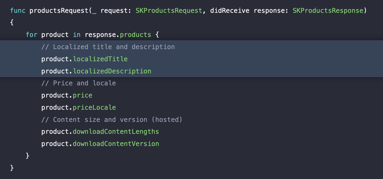 id 목록을 가져왔으면 App Store에서 해당 id를 가진 프로덕트의 localized된 정보를 가져옴